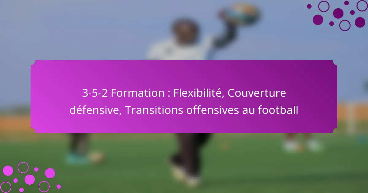 La formation 3-5-2 est un dispositif tactique au football qui comprend trois défenseurs, cinq milieux de terrain et deux attaquants, trouvant un équilibre entre la solidité défensive et l’adaptabilité offensive. Cette formation améliore le contrôle du milieu de terrain et assure une couverture défensive robuste, tout en facilitant des transitions rapides vers l’attaque, la rendant efficace dans diverses situations de match.