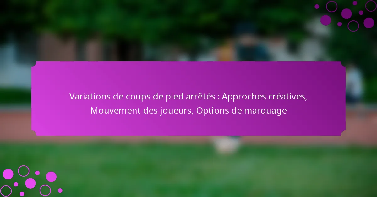 Les approches créatives pour les variations de coups de pied arrêtés impliquent des designs uniques et des mouvements de joueurs qui améliorent les opportunités de marquer. En employant des tactiques innovantes, les équipes peuvent surprendre leurs adversaires et exploiter les faiblesses défensives lors des coups francs et des situations de corner.